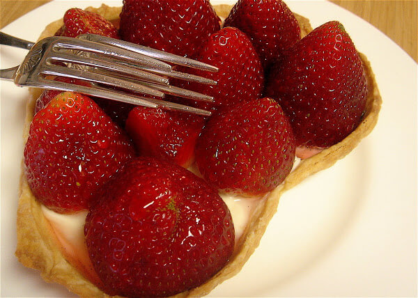 Remove the cream cheese filling and divide between the two tarts. Top with the strawberries and drizzle with the syrup. A light dusting of confectioner’s sugar is a nice touch but unnecessary. Enjoy!