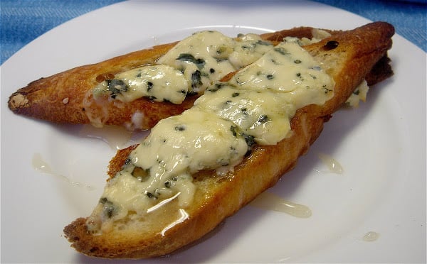 A nice snack: Blue Cheese Toasts Drizzled with Lavender Honey