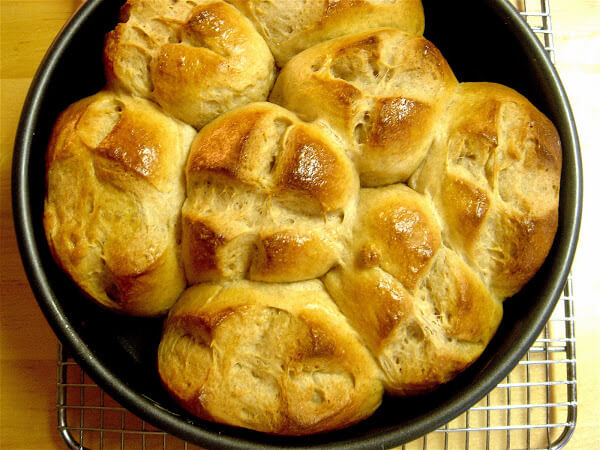 Let buns cool five minutes before drizzling glaze overtop. After the buns are topped with glaze, serve immediately. Note: the glaze is optional — they are delicious spread with softened butter as well.