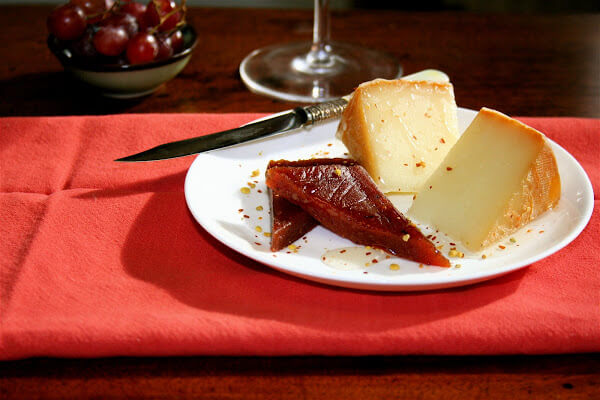 Last week, to celebrate two friends’ recent move to the East Coast from San Diego, I picked up a selection of Spanish and French cheeses, mostly from the Basque Country, as well as a jar of Acacia honey and a small canister of espelette from Di Bruno Bros. While membrillo can be made at home, most specialty shops carry it, and bee pollen can be found at health food stores such as Essene or Whole Foods Market. With a light salad, a fresh baguette and a few slices of prosciutto, these cheeses made a perfect dinner.