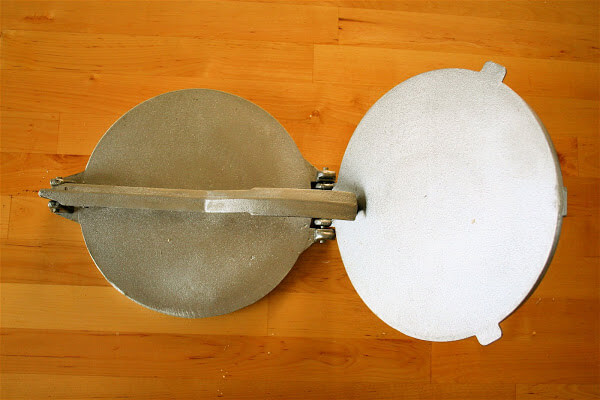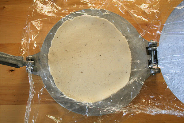 3. Open the press and peel off plastic. Proceed with quesadilla recipe (above) or line a sheet pan with parchment paper and top with your pressed tortillas. Cover with plastic wrap until ready to cook.