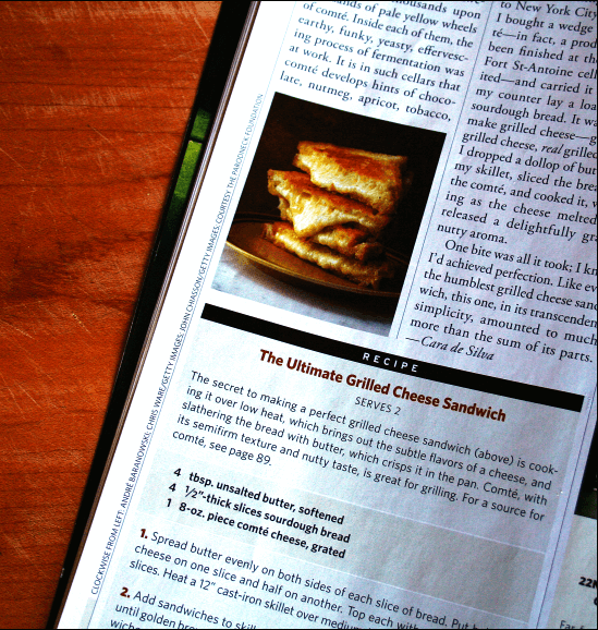 “The Secret to making a perfect grilled cheese sandwich is cooking it over low heat, which brings out the subtle flavors of a cheese, and slathering the bread with butter, which crisps it in the pan. Comté, with its semifirm texture and nutty taste, is great for grilling.”