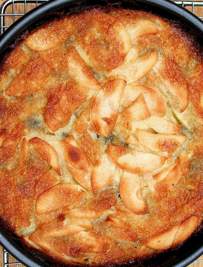 Scented with vanilla and custardy in texture, this simple apple cake comes together in one bowl and emerges golden-crusted. It is one of the most delicious apple cakes I make and never fails to please adults and children alike.