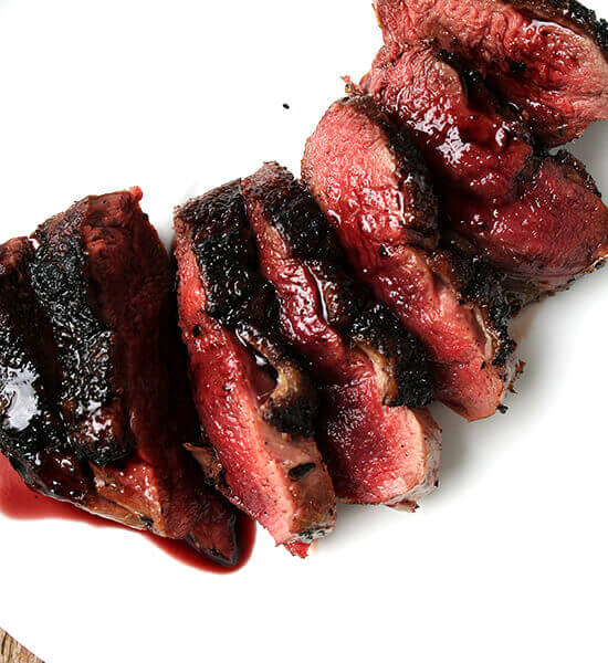 Notes: I cannot give you a foolproof way of cooking your duck breasts. I’ve described what we do below to yield a perfectly medium-rare duck breast from our kitchen, but every piece of meat is different, every oven is different, every pan is different, etc. There are so many factors and truthfully, we ruined several duck breasts before we figured out just how to get it right. The rub and the sauce recipes below, however, are simple and foolproof.