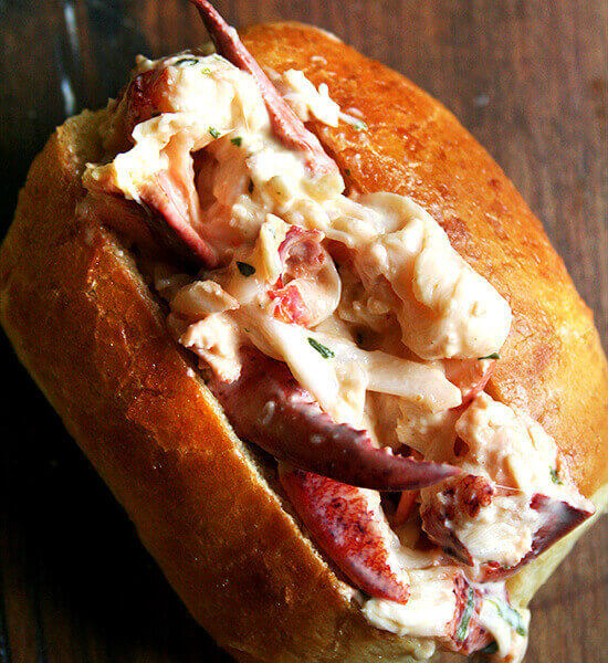 Toast hotdog buns, if desired. (My buns had been baked that day, so I did not toast them.) Spoon lobster meat into buns. Serve with additional wedges of lemon on the side.