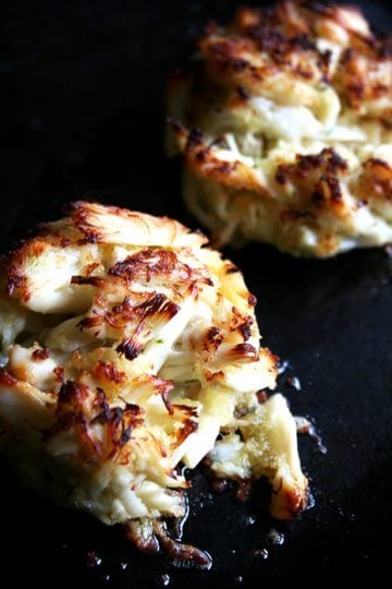 - Brush each crab cake with melted butter. Broil five minutes. Serve with lemon wedges and tartar sauce on the side if desired.
