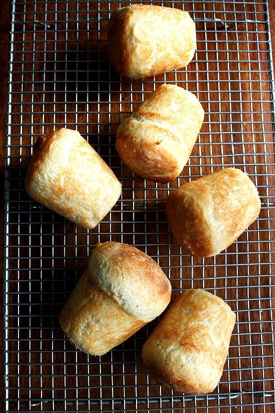 Making mini loaves — perfect for soup — of my mother’s peasant bread in a popover pan: