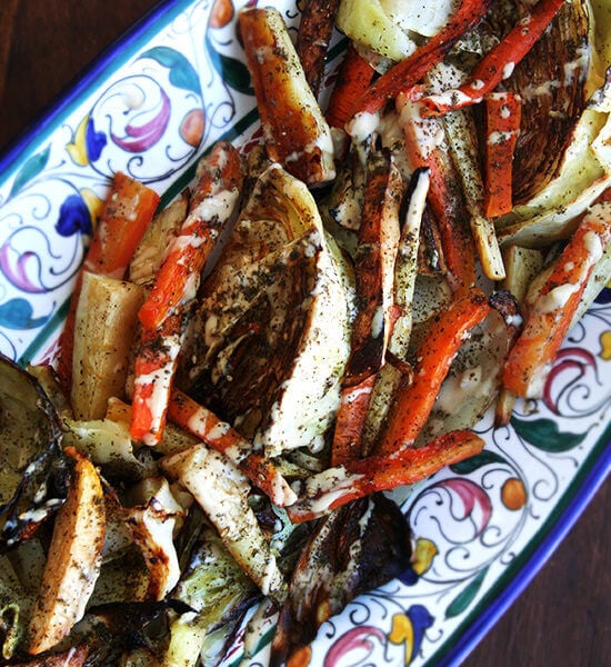 If you share this feeling, this sauce might not be for you, but if you are on the fence, I highly recommend giving it a go, because once you discover how this tahini dressing awakens those languishing vegetables, you might stop worrying about spring’s arrival altogether. And once you see how the lemon brightens those roasted roots, you might find yourself heading back to the market on a mission for carrots and parsnips or anything looking especially tired, pale and wrinkled. And once you see how the za’atar enlivens those caramelized cabbage wedges, you might find yourself rubbing the sauce all over your face, hoping it might work similar miracles there, too.
