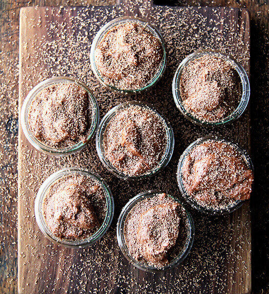 Notes: I use Guittard Chocolate, 64% cacao. Lebovitz used Green and Black, 72% cacao. I mention this because I cut the sugar to ½ cup due to the extra sugar in the chocolate. If you are using a darker chocolate, you might want to use ⅔ cup sugar, which is what the original recipe calls for.