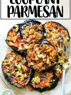 This is my favorite way to make eggplant parmesan. There’s no salting, no breading, no frying, no fussing. The eggplant is roasted and layered with a homemade tomato-basil sauce and parmesan. An irresistible bread crumb layer tops it all off! This is summer comfort food at its best! 🍆🍆🍆🍆🍆🍆