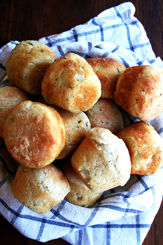 Bread: These no-knead thyme dinner rolls are a snap to throw together and bake while the turkey rests: