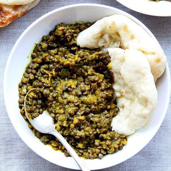 Finally, in the book, Peternell says that often dal is served with a “sizzle,” which is a mixture of melted butter, garlic, and a pinch more each of the spices used in the dal sizzled together for 30 seconds and spooned over the dal. I’ve yet to make the sizzle, nor have I served this with cilantro or yogurt, all of which sound like delicious additions.