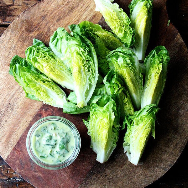As noted above, this dressing is great as a dip for crisp vegetables or wedges of little gem lettuces or tossed with any greens for a simple salad.