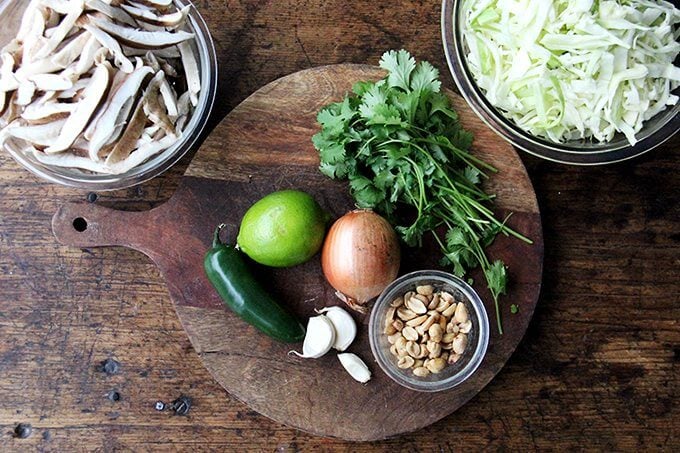 I’ve been making this cabbage pad Thai-ish in some form or another since the late fall, when I spotted the recipe in Andie Mitchell’s Eating in the Middle, and the contents of my CSA miraculously included all of the key ingredients: cabbage, peppers, cilantro, and onions.
