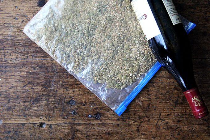 I recently found another breast recipe to add to my small arsenal of white meat recipes: pepita-crusted chicken breasts. It comes from Justin Chapple’s Mad Genius Tips, and they’re so good! Here’s the gist: toast pumpkin seeds, crush them coarsely, mix with a few spices (smoked paprika or ancho chile powder, cumin and cayenne), then use them to “bread” your cutlets. If you love panko chicken and are looking for a little change, give this one a go—the seeds add such a lovely texture and flavor.