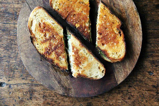 This past winter, Colu Henry, author of Back Pocket Pasta, introduced me to ‘nduja – a smoky, spreadable salami from Calabria. ‘Nduja is Colu’s trick to making a quick and super flavorful pasta alla vodka, and for this, it has become a staple in my pantry. Shortly after I posted the recipe on Food52, someone wrote in noting that she loved smearing ‘nduja over crusty bread, which made me instantly crave a ‘nduja grilled cheese. I gave it a go with Wisconsin fontina, a great melting cheese, and basil pesto, to offer a fresh counterpoint to the richness of the pâte-like spread. In keeping with the Italian theme, I sandwiched the three ingredients between thick slices of ciabatta, whose porous crumb so nicely absorbed the flavors of the spicy ‘nduja and sweet, earthy fontina. A little of each ingredient here goes a long way, so, if you can, use a light hand when layering—though I’ll understand if you can’t.