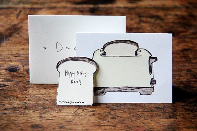 Shortly after Mother’s Day, I contacted an illustrator, Steph Becker, to redesign the toast bookplate — I wanted it smaller, so it could pop out of a toaster notecard.
