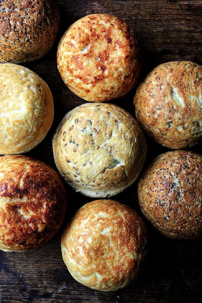 Francis, so sorry for the delay here! Those are actually loaves of peasant bread from Bread Toast Crumbs! Master loaf, cheddar-parm, and quinoa and flax.