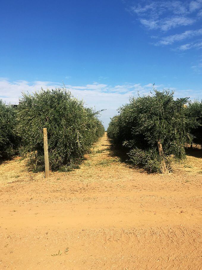 I want to say many many many years — I’ll find out, but I’m pretty sure that the first olive groves they planted are still producing olives. They are super careful never to run the harvesters when it’s raining or even when the ground is wet. I’ll report back.