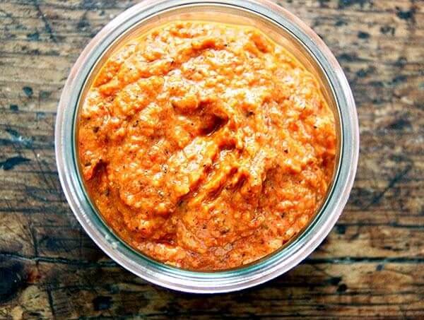 I’ve made a number of small changes to the recipe, so if you’d like to view the original, find it here. Changes include: omit the caraway seed and tomato paste, use a white onion in place of a red (though a red onions will work fine), roast the peppers at 450ºF as opposed to broil.