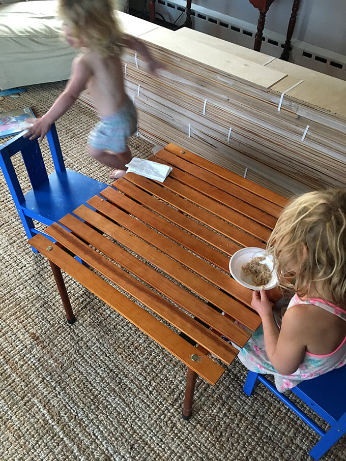- Having drawers with plates, silverware, glasses accessible for the children.