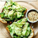 I’ve since used it another toast with sliced, mashed avocado — avocado on avocado is never a bad thing, right? I’ve also smeared it over — wait for it — more toast, which I then topped with salted cucumber ribbons and dukkah (see below).