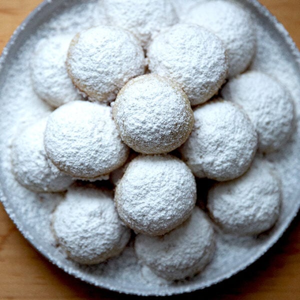 Lemony with subtle almond notes, these melt-in-your-mouth snowball cookies are the perfect holiday cookie. Made with cold butter, the dough comes together in seconds in the food processor, and the recipe yields at least 30, making it perfect for gifting all season long.