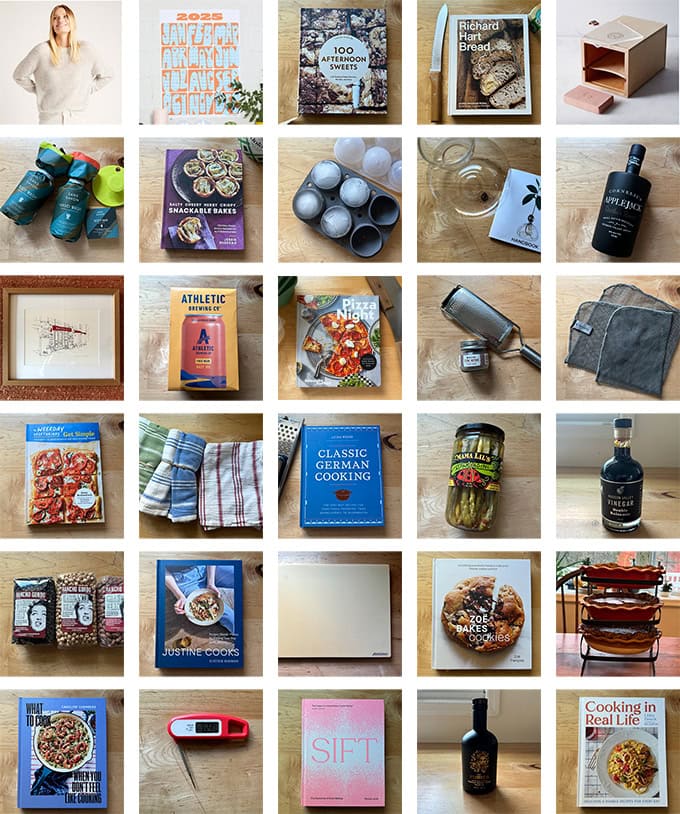 Friends hello! Below you will find a collection of gift ideas ranging from new cookbooks to delicious aged balsamic vinegar to favorite dish towels to fun round giant ice cubes.