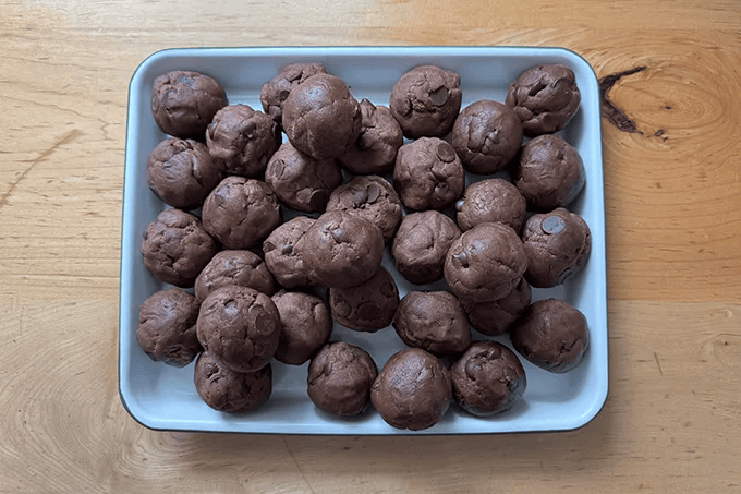 It is such a treat to have cookie dough portioned, balled up, and ready to bake on demand. Soft & Chewy Chocolate Chip Cookie dough balls or Double Chocolate Espresso Cookie dough balls would make a great gift. Tuck them into a ziplock bag or other vessel and store them in the fridge or freezer.