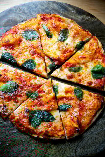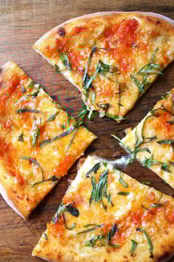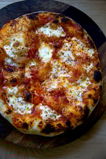 Pizza Margherita, Marcella Hazan Tomato Sauce with Onion and Butter, Homemade Ricotta
