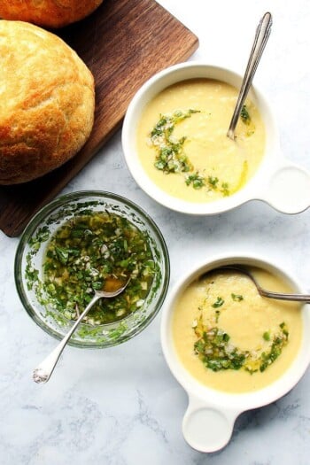 Five-Ingredient Corn Soup with Herb Salsa