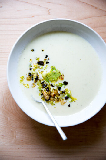 Cream of Celery Soup with Walnut-Currant Salsa